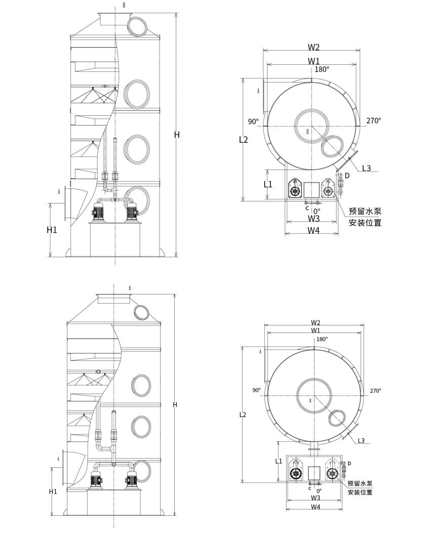 Type 2: Syklonskrubber med delt vanntank (tårndiameter: Φ2500mm-Φ3500mm)